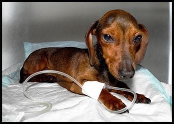 Rápidamente lo trajeron al Servicio Veterinario de Urgencias de la Clínica Veterinaria Son Dureta. Pancho llegó con un shock hipovolémico, (falta de oxígeno en órganos y tejidos debido a la pérdida tan grande y aguda de líquidos y sangre) sus mucosas estaban muy pálidas, su pulso era débil y su temperatura corporal muy baja. Se realizaron analíticas, donde no se identificaron órganos internos dañados aunque las enzimas hepáticas estaban alteradas y por supuesto, las alteraciones del sistema digestivo asociadas a su estado.