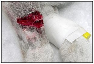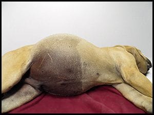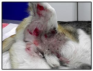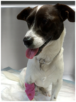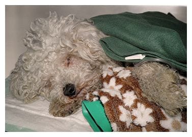 Rápidamente lo trajeron al Servicio Veterinario de Urgencias de la Clínica Veterinaria Son Dureta. Pancho llegó con un shock hipovolémico, (falta de oxígeno en órganos y tejidos debido a la pérdida tan grande y aguda de líquidos y sangre) sus mucosas estaban muy pálidas, su pulso era débil y su temperatura corporal muy baja. Se realizaron analíticas, donde no se identificaron órganos internos dañados aunque las enzimas hepáticas estaban alteradas y por supuesto, las alteraciones del sistema digestivo asociadas a su estado.